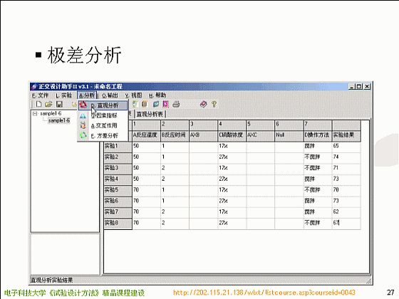 这是一个带交互作用的正交试验,我们可以利用正交设计助手对其制定试验方案,并对实验结果进行极差分析。